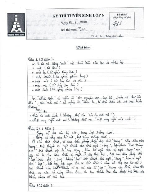 | Theo thầy Nguyễn Xuân Khang, đề thi tuyển sinh vào lớp 6 năm nay khó hơn năm 2011 nên điểm chuẩn là 13, thấp hơn năm 2011 là 2 điểm (15 điểm). Năm nay có 1.700 thí sinh dự thi, nhưng trường tuyển mới 250. |