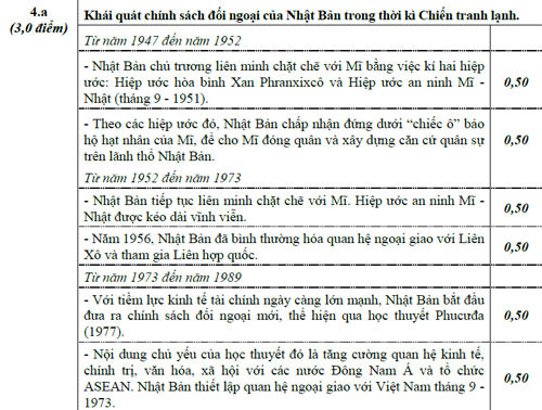 Theo đó, phần điều chỉnh nằm trong câu 4a (Phần riêng): "Khái quát chính sách đối ngoại của Nhật Bản trong thời kỳ Chiến tranh lạnh".