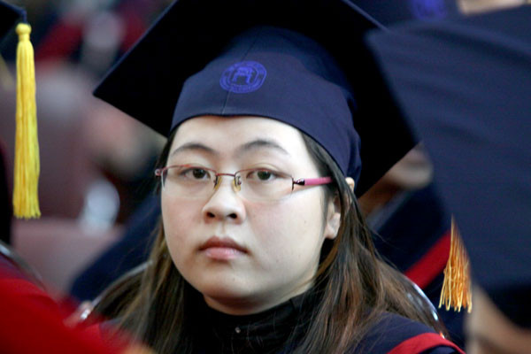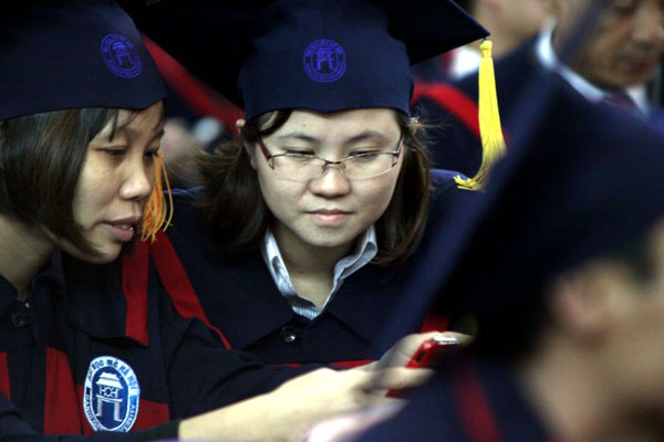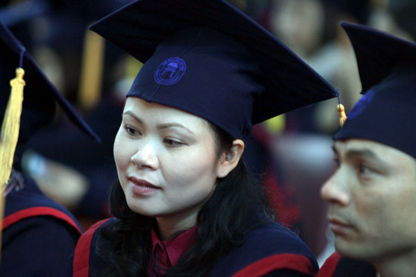 | Học viên trong giây phút ngóng chờ nhận bằng cử nhân. |