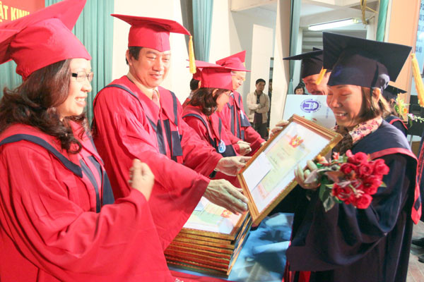 | Thấy và trò Viện Đại học Mở tại lễ trao bằng tốt nghiệp. Ảnh: Minh Đức |