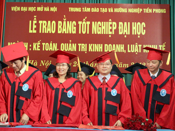 Tại lễ trao bằng tốt nghiệp Đại học, Tiến Sỹ Nguyễn Mai Hương nói, trong 10 năm qua, Trung tâm đào tạo Tiền Phong đã phối hợp Viện trưởng Viện Đại học Mở Hà Nội tuyển sinh đào tạo đại học từ xa các ngành Quản trị kinh doanh, Luật kinh tế, Kế toán, Tiếng Anh, Tin học…loại hình đào tạo lấy việc tự học, tự nghiên cứu của người học làm cốt lõi rất phù hợp với xã hội hiện nay, vừa làm vừa học, học nữa, học mãi. Độ tuổi không giới hạn thường là từ 25 tuổi trở nên, hiện tại có cụ 78 tuổi đang theo học.