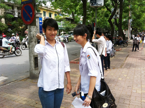 | Thí sinh cười tươi sau môn thi môn Ngữ Văn sáng nay 2-6. Ảnh: Đỗ Hợp |