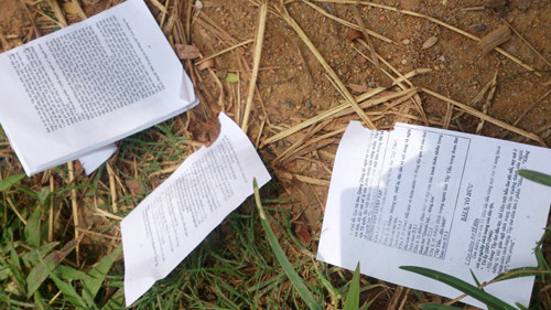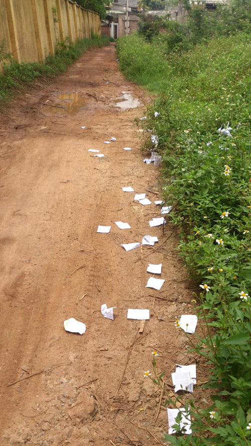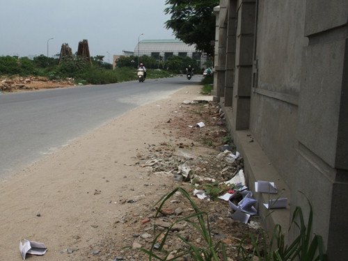 | Dọc tuyến đường cạnh cổng trường THPT Phùng Khắc Khoan rải đầy phao thi. |