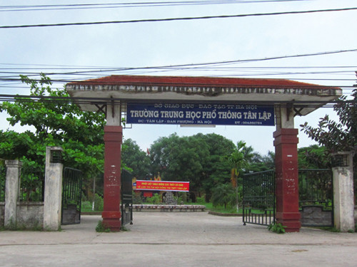 | Bên ngoài trường THPT Tân Lập (huyện Đan Phượng) cũng xuất hiện phao thi. |