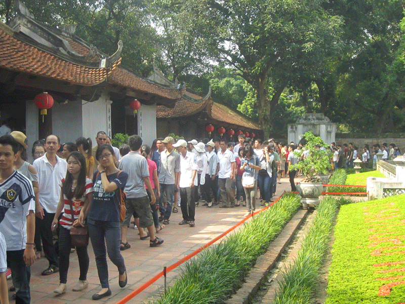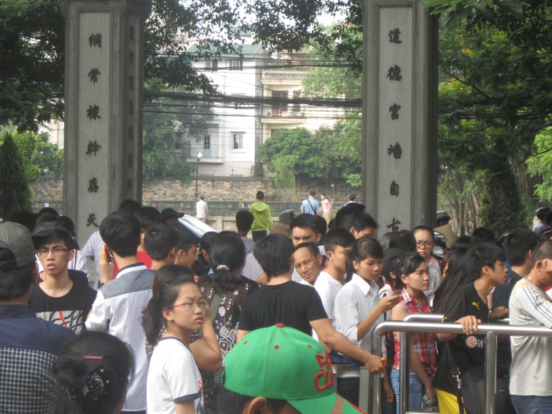 | Rất đông sĩ tử đến Văn Miếu cầu may. |