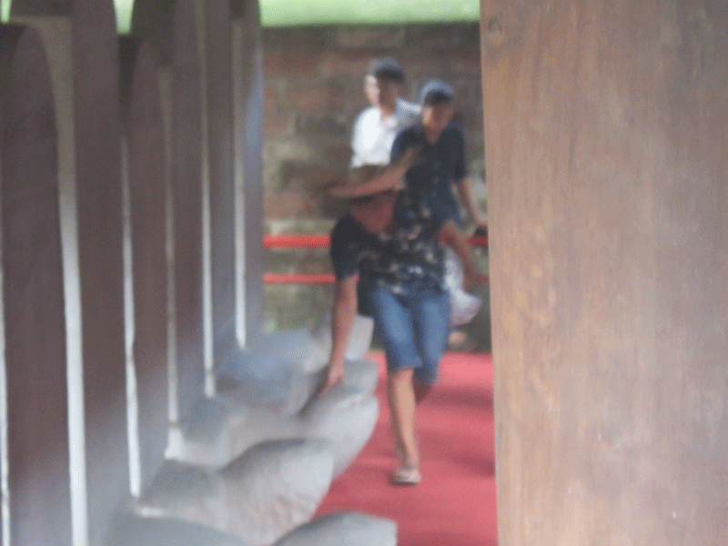 | Sĩ tử "thi nhau" vượt rào vào sờ đầu rùa, dù có rào ngăn và lực lượng tình nguyện nhắc nhở. |