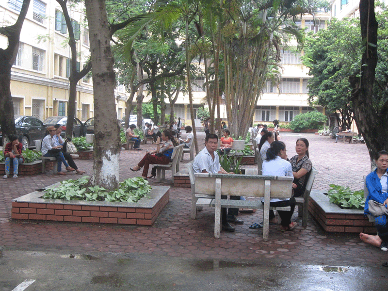 Phụ huynh chờ con ở khắp nơi. Ảnh: THanh Hà.