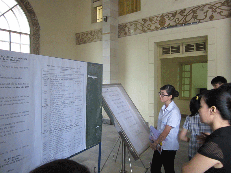 Thí sinh xem sơ đồ phòng thi. Ảnh: Thanh Hà.