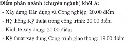 Điểm chuẩn chi tiết vào các ngành của ĐH Xây dựng năm 2013 như sau: