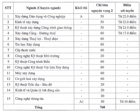 Trường cũng xét tuyển 760 chỉ tiêu NV2 vào các ngành chi tiết như sau:
