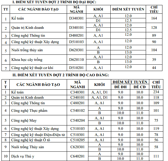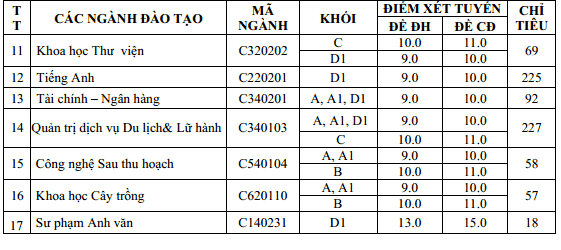 | 14 | Sư phạm kỹ thuật nông nghiệp | D140215 | A:15 |