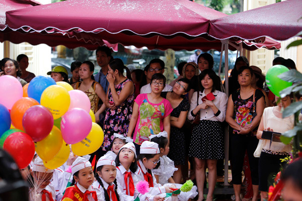 | Phụ huynh tranh thủ ghi lại hình ảnh đáng yêu của con em mình trong ngày đầu khai giảng. |