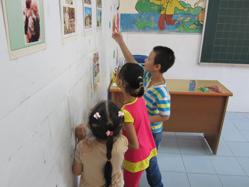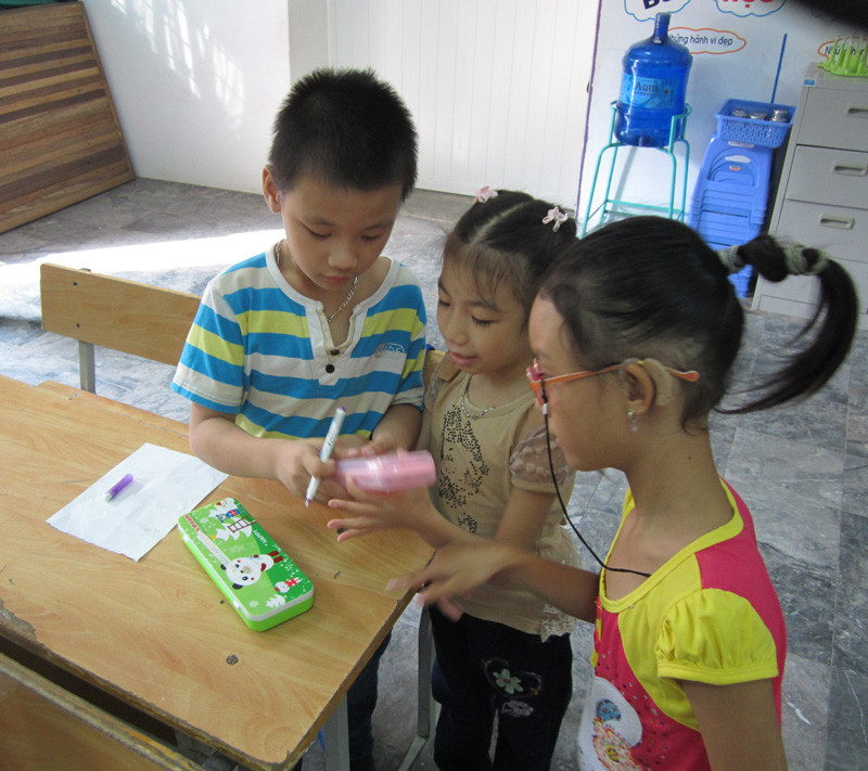 | Ngay khi đến lớp, Hiếu đã hòa nhập cùng các bé khác. |