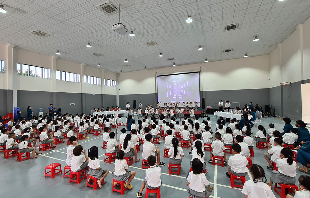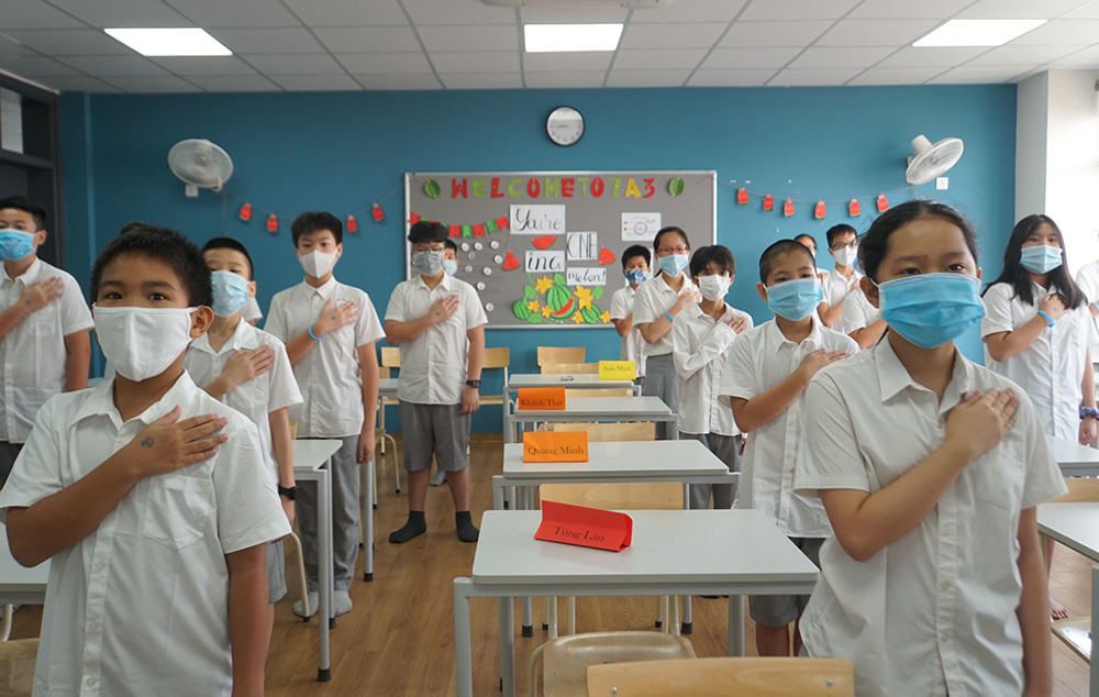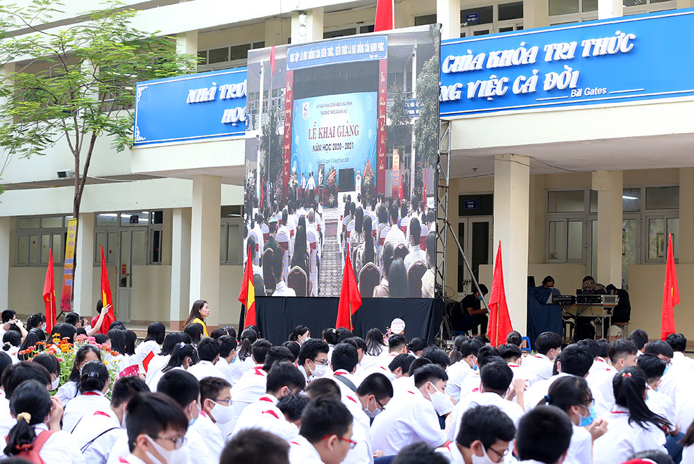 Khai giảng năm nay, thay vì tổ chức buổi Lễ trên toàn trường, Nhà trường đã chia nhỏ hoạt động tại các lớp, dành không gian buổi Lễ chia nhỏ cho Khối 1, Khối 6 và Khối 10 để đảm bảo yêu cầu giãn cách phòng dịch