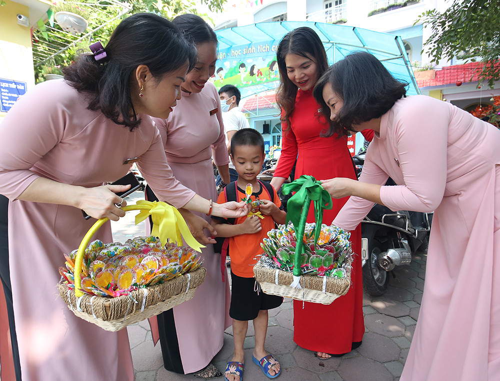 Ngay sau khi khai giảng và ra về các con còn được nhà trường tặng bánh kẹo tạo sự hứng khởi khi đến trường.