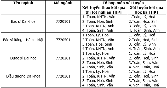 Tổ hợp môn xét tuyển vào các ngành Khối khoa học sức khỏe: