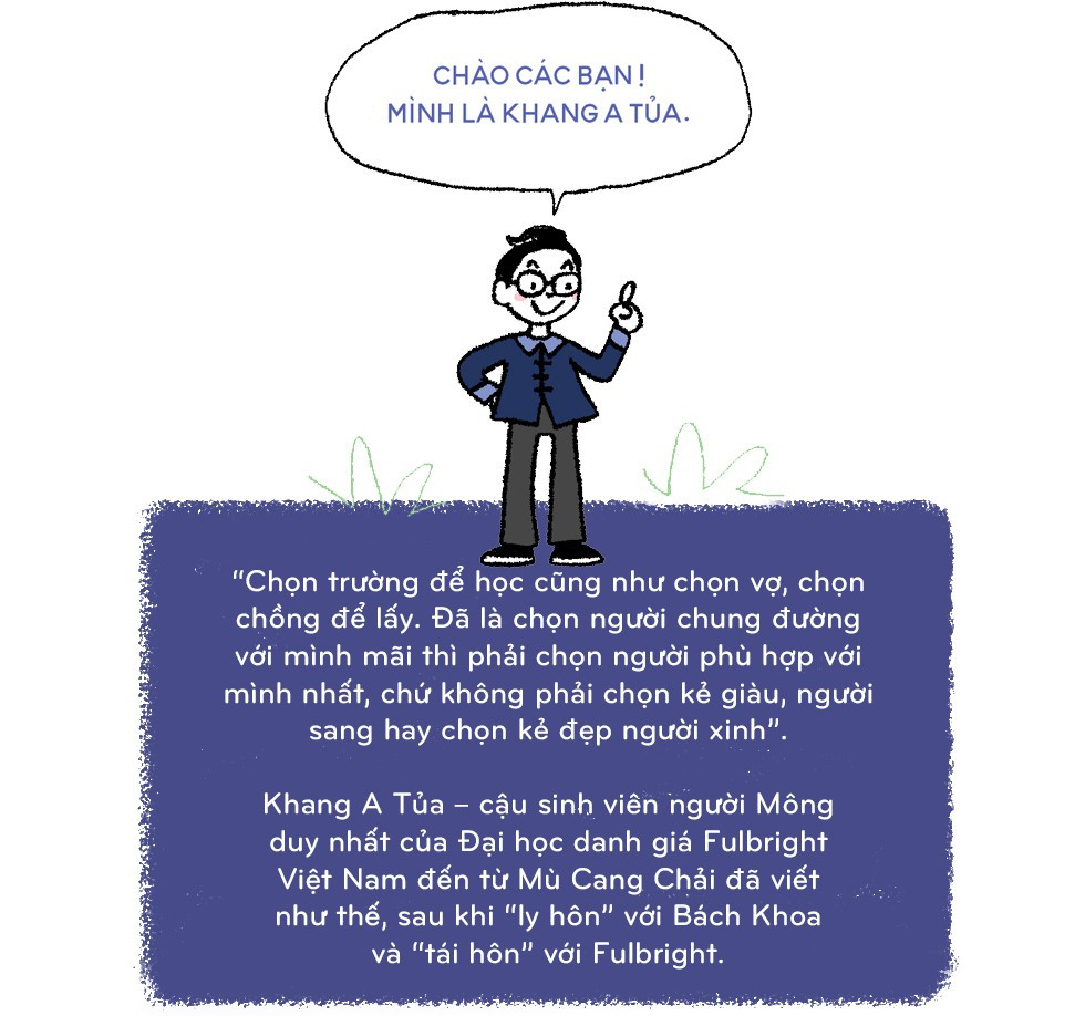 Khang A Tủa trở thành sinh viên của Đại học Fulbright Việt Nam (FUV) năm 25 tuổi – già hơn tất cả các bạn đồng môn của mình.