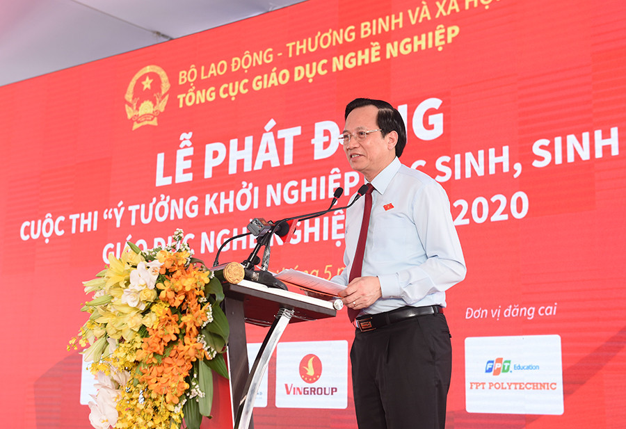 Bộ trưởng Đào Ngọc Dung cho biết, nhiều năm qua, chúng ta trân trọng những ý tưởng, sáng kiến, trân trọng sự đối mới của sinh viên đặc biệt của các thanh niên, học sinh. Thủ tướng đã phê duyệt Đề án hỗ trợ học sinh, sinh viên khởi nghiệp đến năm 2025. Do đó cuộc thi “Ý tưởng khởi nghiệp của học sinh sinh viên giáo dục nghề nghiệp năm 2020” là bước chuẩn bị rất tốt, tiến tới Ngày hội khởi nghiệp quốc gia của học sinh, sinh viên.