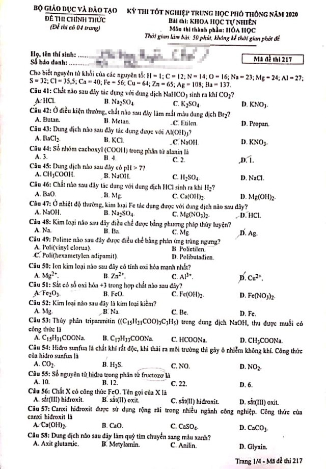 | 41. B | 42. D | 43. A | 44.C | 45. D | 46.C | 47.B | 48.D | 49.D | 50.D |