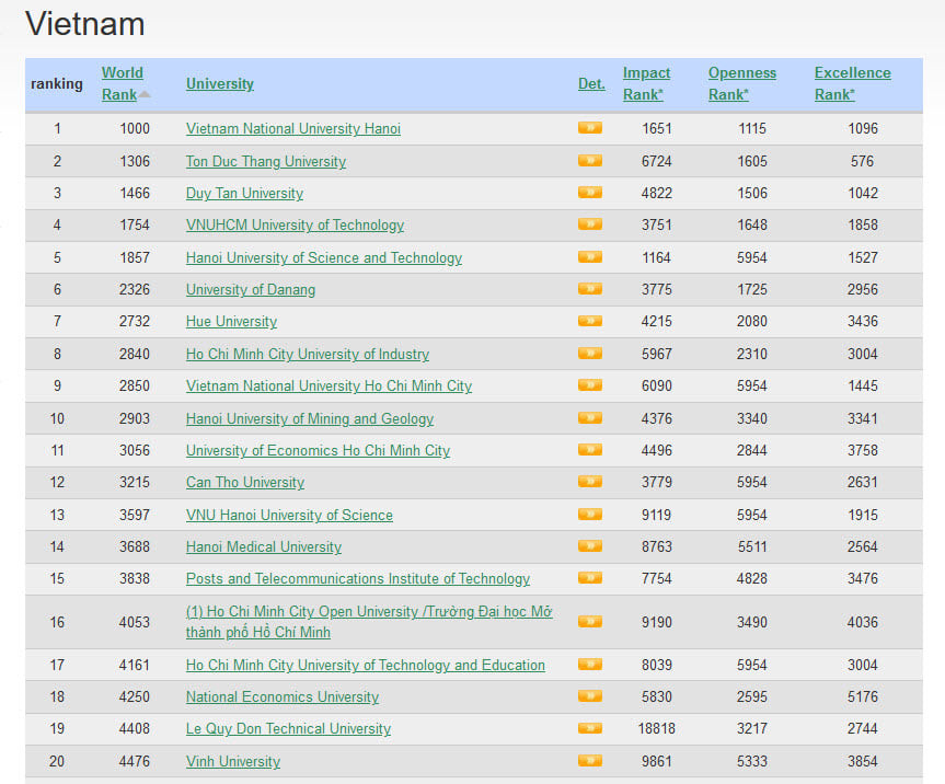 “Để được xếp hạng bởi Webometrics thì một ĐH cần có một website chính thức và một số chỉ số tối thiểu về nghiên cứu khoa học. Chính vì thế mà Việt Nam có tới 178 ĐH đã được xếp hạng trong năm nay. Như vậy việc một ĐH được xếp hạng bởi Webometrics là không khó, vấn đề là hạng thế nào mới là quan trọng. Điều này hoàn toàn khác với các bảng xếp hạng uy tín khác như ARWU, THE, QS, URAP US News”, TS Út chia sẻ.