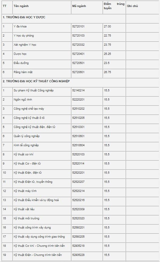Cụ thể điểm trúng tuyển đại học hệ chính quy đợt I theo điểm thi THPT Quốc gia năm 2017 của các trường, khoa trực thuộc ĐH Thái Nguyên như sau:
