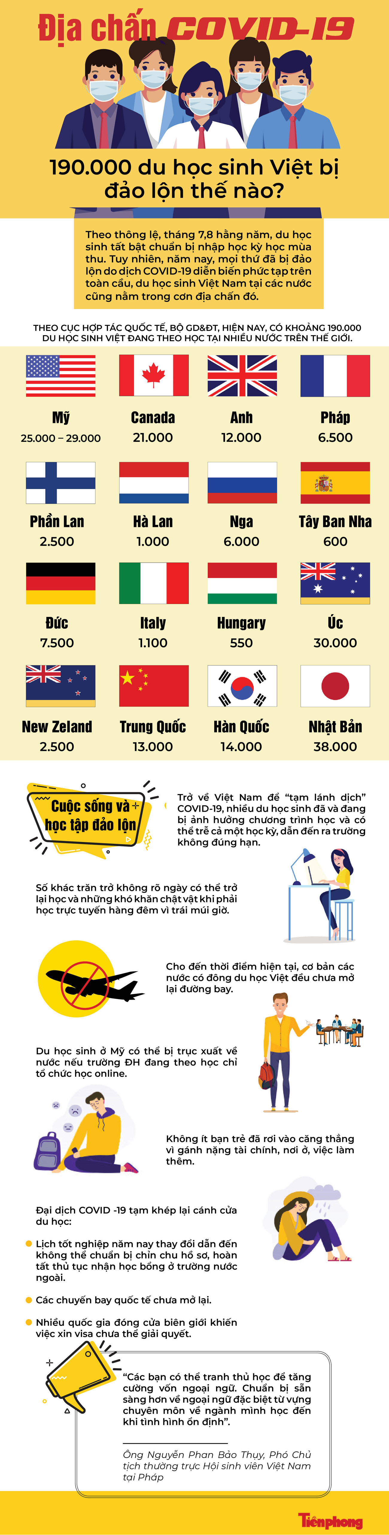 TPO - Theo thông lệ, tháng 7,8 hằng năm, du học sinh tất bật chuẩn bị nhập học kỳ học mùa thu. Tuy nhiên, năm nay, mọi thứ đã bị đảo lộn do dịch COVID-19 diễn biến phức tạp trên toàn cầu, du học sinh Việt Nam tại các nước cũng nằm trong cơn địa chấn đó.