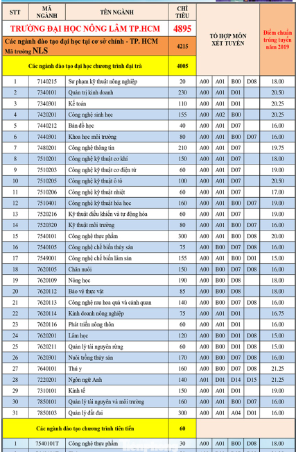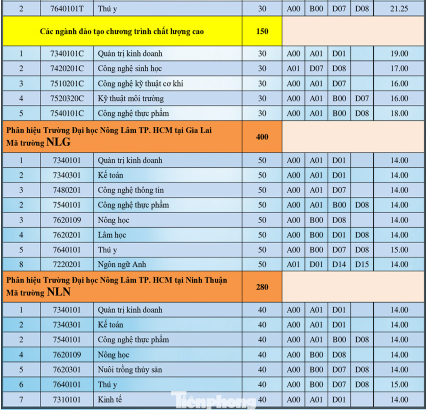 Tương tự, Trường ĐH Nông lâm TPHCM hiện cũng chỉ còn 1 ngành đào tạo sư phạm đó là ngành sư phạm kỹ thuật nông nghiệp. Với ngành này, trường lấy điểm chuẩn là 18 điểm (bằng mức sàn của Bộ GD&ĐT).