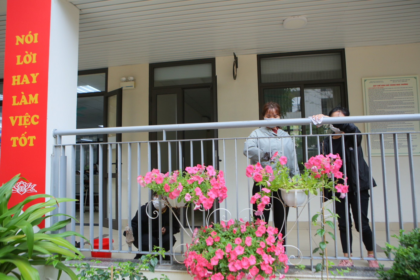 Ngày 28/2 và 1/3 tới, các cán bộ giáo viên và nhân viên sẽ tiếp tục tổng vệ sinh toàn trường, chuẩn bị nước sát khuẩn, xà phòng để sẵn sàng đón học sinh trở lại.