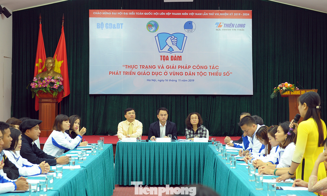 Chủ trì Tọa đàm "Thực trạn và giải pháp công tác phát triển giáo dục ở vùng dân tộc thiểu số" có Phó Chủ tịch T.Ư Hội LHTN Việt Nam Nguyễn Kim Quy; Phó Vụ trưởng Chính sách Dân tộc Ban Dân tộc Bế Thị Hồng Vân; Phó Vụ trưởng Vụ Giáo dục Dân tộc Bộ GD&ĐT Lê Như Xuyên.