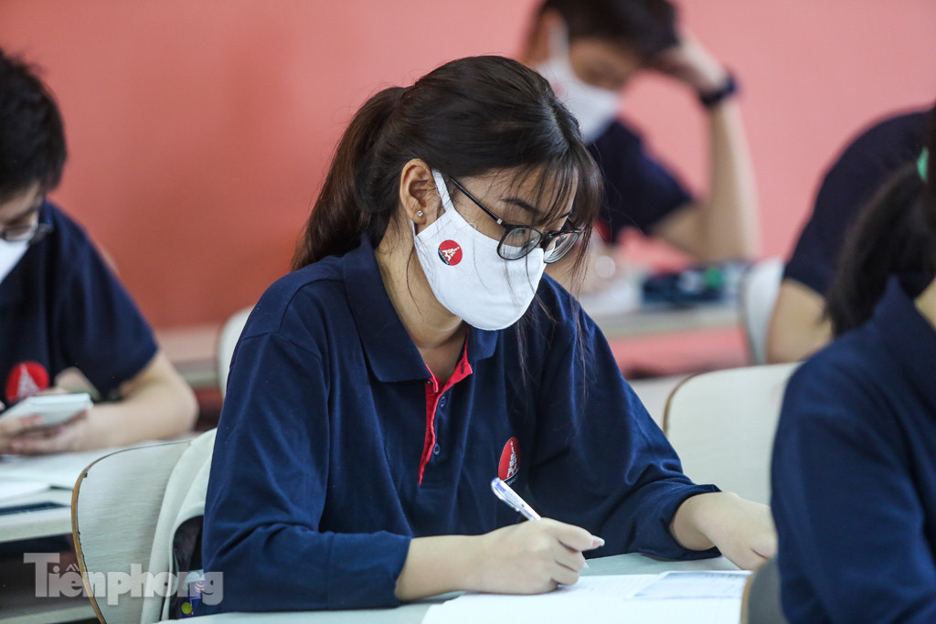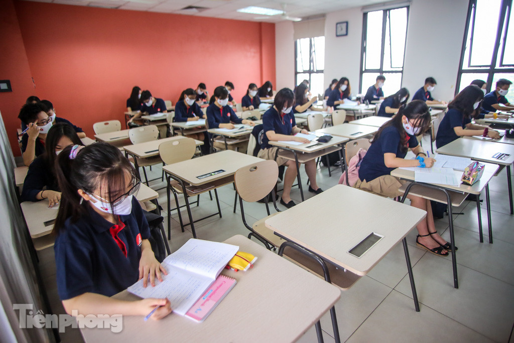 Trong tiết đầu tiên đi học của ngày hôm nay (4/5), các thầy cô chủ nhiệm phổ biến, hướng dẫn cho học sinh cách phòng dịch COVID-19. Cô Vũ Hồng, chủ nhiệm lớp 8G2 dặn dò các học sinh của mình: "Chúng ta vừa trở lại sau thời gian dài chống dịch COVID-19, đêm qua cô mất ngủ ngóng chờ ngày hôm nay để được gặp các em. Mặc dù đã quay lại trường nhưng phải nghiêm túc thực hiện các quy định phòng dịch, luôn đeo khẩu trang, thường xuyên rửa tay bằng nước sát khuẩn, tránh túm 5 tụm 3 trong giờ ra chơi, giờ nghỉ trưa. Vì giờ chỉ cần thêm 1 ca nhiễm trong cộng đồng là cô trò mình có thể lại nghỉ vô thời hạn".