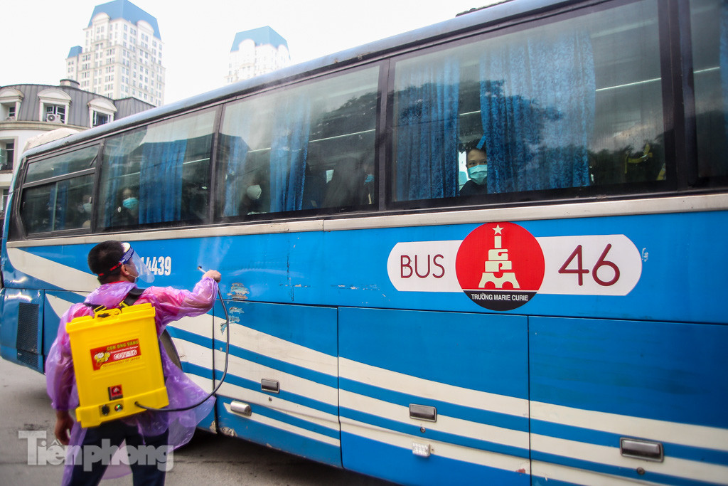 Xe buýt trường được khử khuẩn khi ra vào trường.