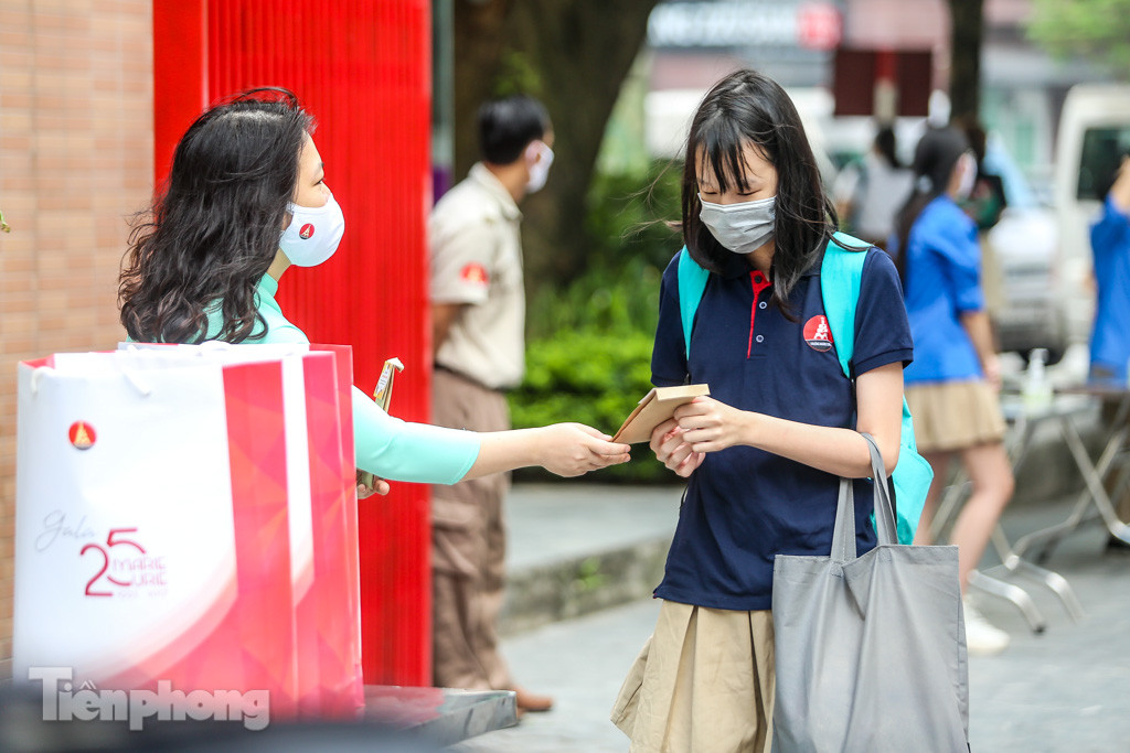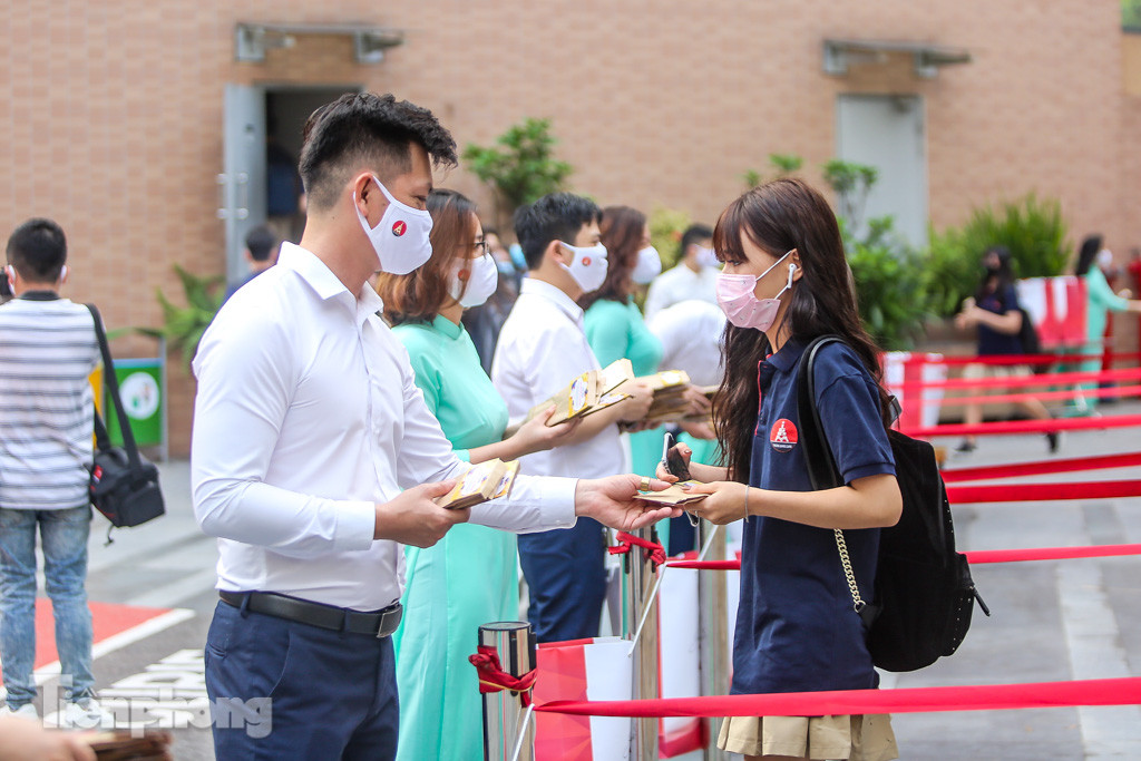 Ngoài những món quà vật chất, học sinh bất ngờ nhận món quà tinh thần từ thầy cô, đặc biệt từ thầy Hiệu trưởng khi ra tận cổng, vẫy tay chào đón học sinh quay trở lại học tập. " Thầy trò xa cách nhau một thời gian dài phòng COVID-19, đêm qua tôi không ngủ được vì hân hoan, vui mừng chờ đợi giây phút này quá, không chỉ tôi, các thầy cô đều ra cổng để chào đón học sinh của mình. Ngày tựu trường hôm nay còn đặc biệt hơn ngày tựu trường ngày 5/9 vì chúng ta vừa trải qua trận chiến phòng dịch. Nhà trường đã chuẩn bị kỹ càng, về sinh, khử khuẩn trong ba ngày vừa qua, chuẩn bị tinh thần vẫn là cái lớn nhất để đón các em quay trở lại trường", thầy Khang, Hiệu trưởng trường Marie Curie cho biết.