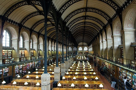 Thư viện Quốc gia Pháp Sainte-Genevieve ở Paris được xây dựng từ năm 1851. Điểm nhấn của công trình là những dàn đèn và những mái vòm.