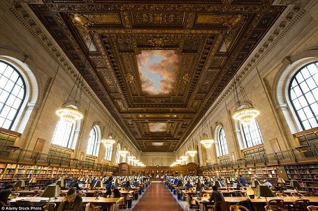 Thư viện Công cộng New York, Mỹ đã mất tới 12 năm xây dựng với trần cao và nhiều chi tiết trang trí mạ vàng.