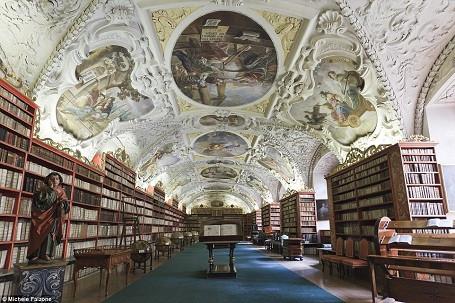 Sảnh Thần học trong thư viện Strahov ở Praha, Séc với phần mái tuyệt đẹp.