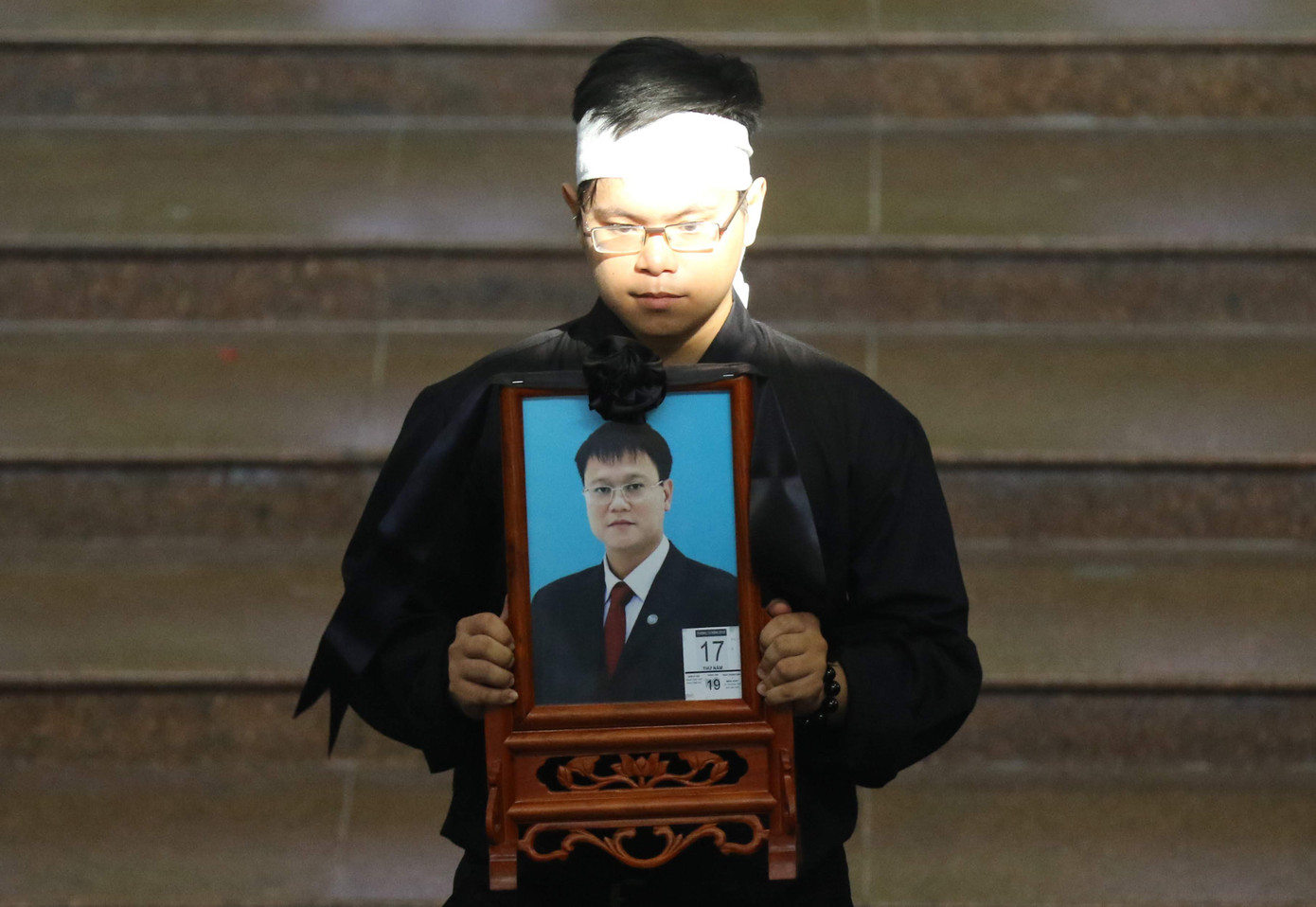 Con trai thứ trưởng Lê Hải An mang di ảnh thứ trưởng