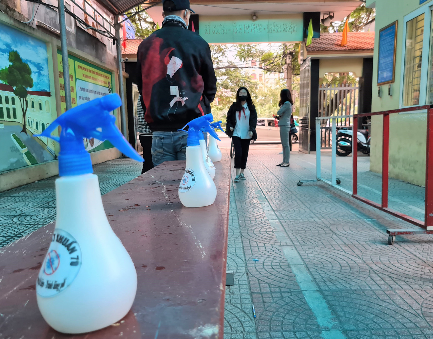 Nhà trường nhắn tin cho từng phụ huynh để đảm bảo học sinh có sức khỏe ổn định, ăn sáng tại gia đình và chuẩn bị bình nước cá nhân trước khi đến trường. “Ngày hôm qua và 6h sáng nay, nhà trường đã nhắn tin nhắc nhở tới tất cả phụ huynh học sinh khối 9 việc đo thân nhiệt cho các con trước khi đến trường. Nếu các con bị sốt, ho hoặc khó thở thì phụ huynh cho con nghỉ ở nhà để theo dõi thêm. Còn đối với học sinh đi học, phụ huynh nhắc nhở việc đeo khẩu trang, ăn sáng tại gia đình, chuẩn bị bình nước cá nhân và tuân thủ đầy đủ các quy định phòng chống dịch của Bộ y tế” cô Hương cho biết thêm.