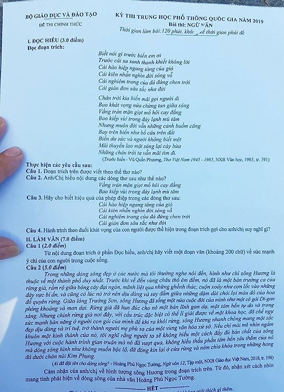 Nhận xét đề thi Ngữ văn THPT quốc gia 2019: Hay, vừa sức và không quá bất ngờ