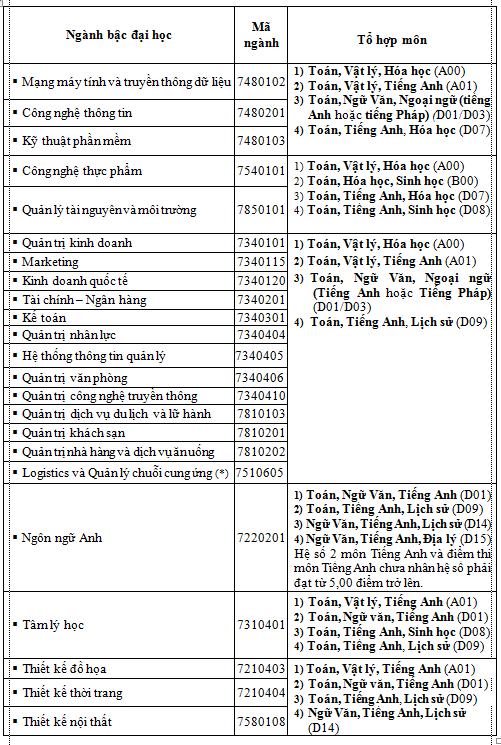 Phương thức 3 (chiếm 15%): Xét tuyển trên kết quả học tập THPT theo tổ hợp 3 môn.