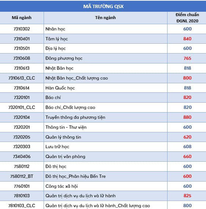 Trường ĐH Khoa học Xã hội và Nhân văn (KHXH&NV) ĐHQG TPHCM) đã công bố kết quả xét tuyển bằng phương thức đánh giá năng lực do ĐHQG TPHCM tổ chức.