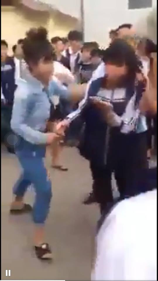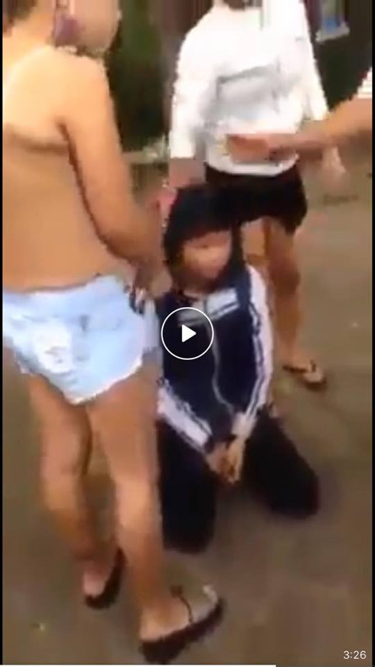 Đoạn video hơn 3 phút vừa được một tài khoản facebook đăng tải ghi lại cảnh một nữ sinh mặc áo đồng phục, bị 3 phụ nữ túm tóc, lôi xềnh xệch ngay gần cổng trường.
