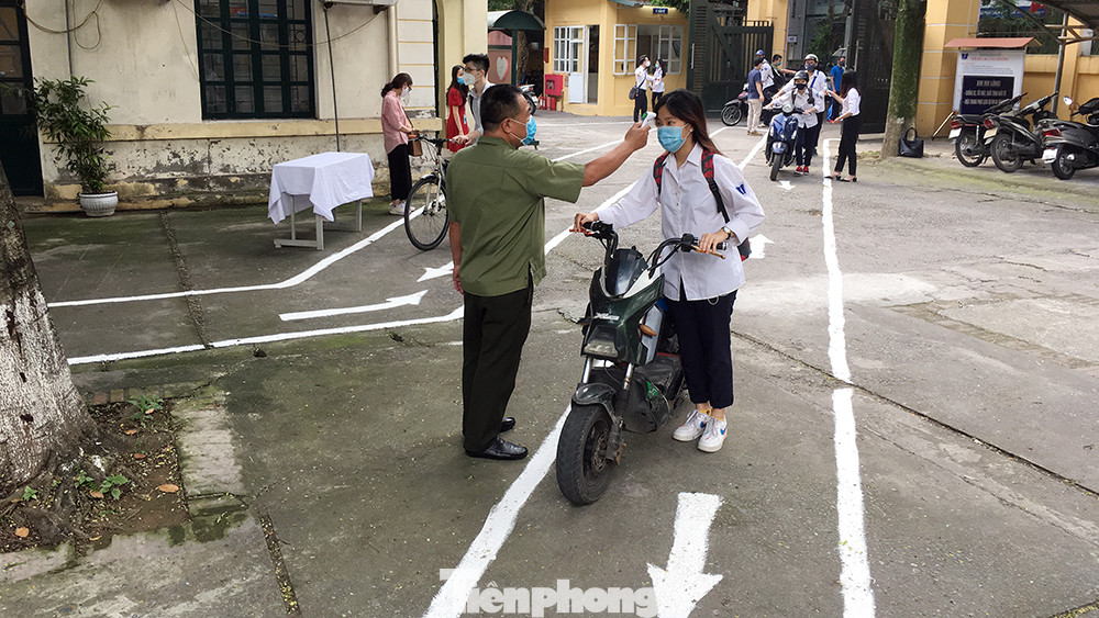 Để chuẩn bị cho học sinh đến trường sáng nay, nhiều trường THCS, THPT tại Hà Nội đã vệ sinh trường học, chia nhỏ lớp, phân luồng học sinh tại cổng để đo thân nhiệt cũng như áp dụng những biện pháp phòng dịch trong trường học.