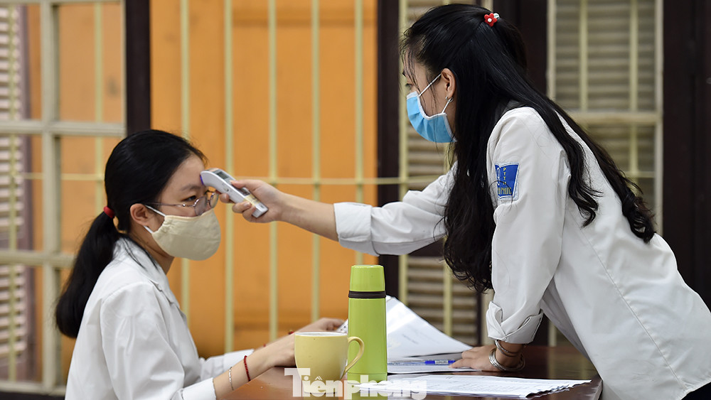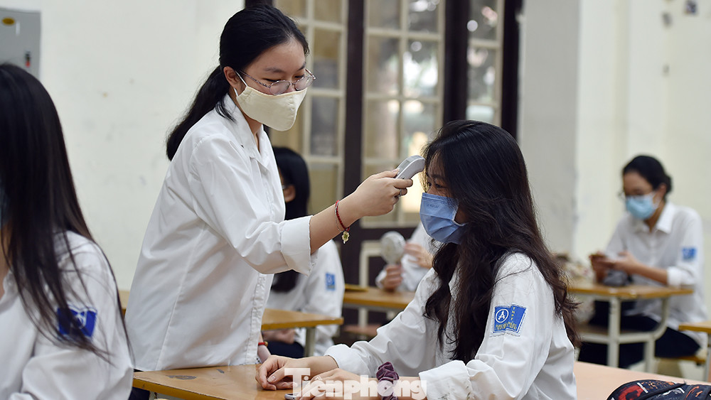 Lớp trưởng đo lại thân nhiệt cho từng thành viên trong lớp để tổng hợp nộp nhà trường.