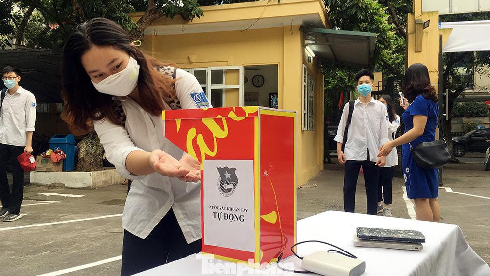 Do số lượng học sinh đến lớp gần như cùng vào một thời điểm, sáng kiến của trường THPT Phan Đình Phùng là tạo máy phun nước khử khuẩn tay tự động nhằm tránh học sinh phải động tay vào nút bấm tránh lây nhiễm dịch bệnh nếu có.