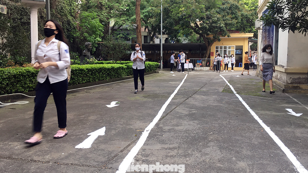 Khoảng cách giữa mỗi học sinh được các bạn trẻ tuân thủ nghiêm ngặt ngay từ ngày đầu quay trở lại trường học sau dịch.