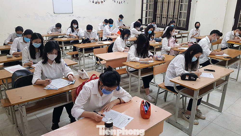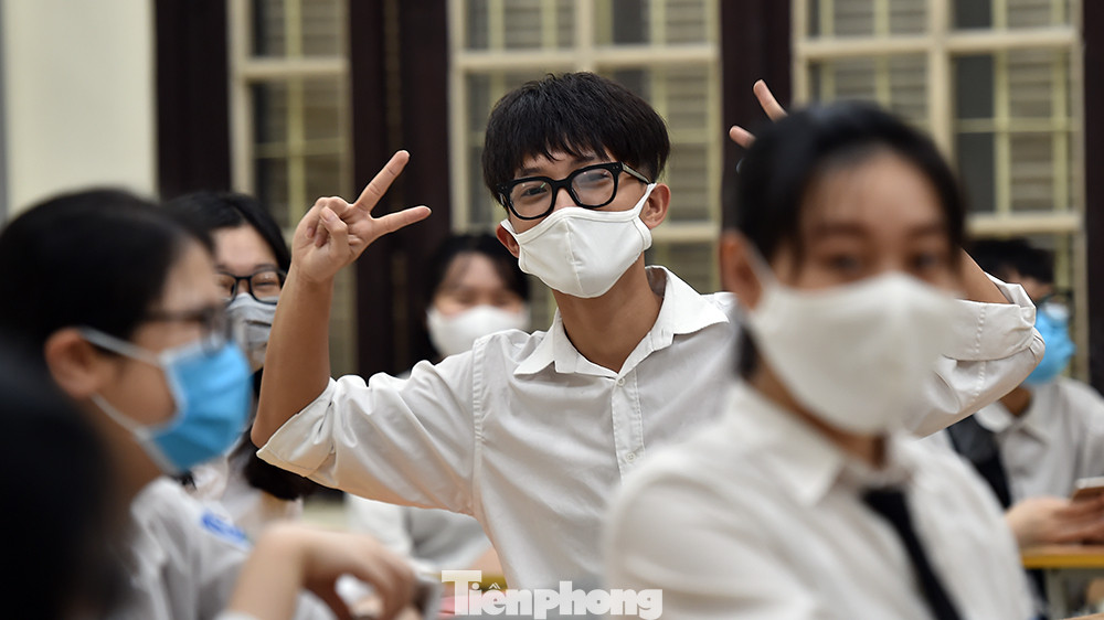Niềm vui của học sinh cuối cấp khi trở lại lớp học sau thời gian nghỉ dài do ảnh hưởng của dịch Covid-19.