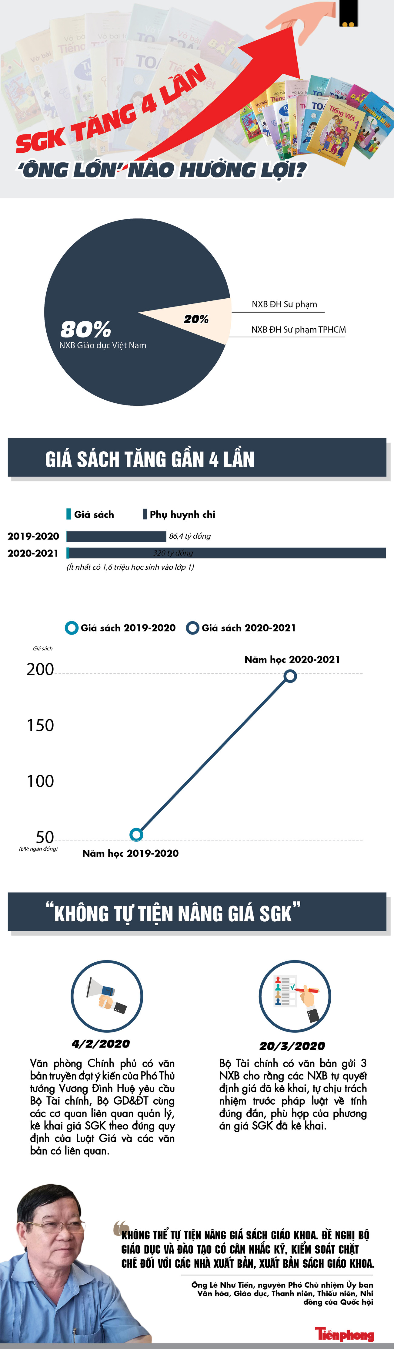 TPO - Hiện nay, NXBGDVN đang độc quyền phát hành SGK. Tới đây, với SGK lớp 1, quyền lợi này bị chia sẻ cho NXB ĐH Sư phạm và NXB ĐH Sư phạm TPHCM. Tuy nhiên, tính trên đầu sách thì NXBGDVN vẫn chiếm đến 80%.