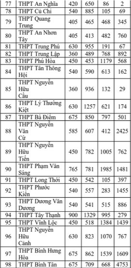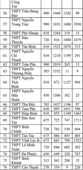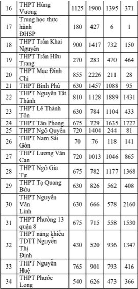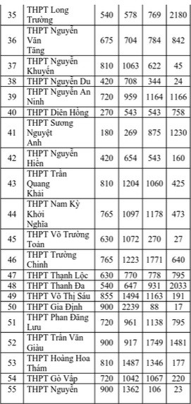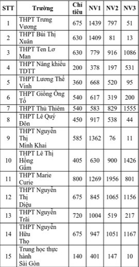 Cụ thể, ở lớp 10 không chuyên, Trường THPT Gia Định có số thí sinh đăng ký nguyện vọng (NV)1 cao nhất với 2.239 thí sinh cho 900 chỉ tiêu. Ở lớp 10 chuyên, Trường THPT chuyên Lê Hồng Phong có số thí sinh dự thi đông nhất với 3.124 thí sinh đăng ký NV1 cho 705 chỉ tiêu.
