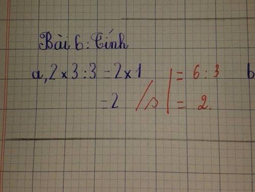 Bài toán này đã thu hút nhiều người tham gia bình luận khiến cuộc tranh cãi vẫn đang diễn ra gay gắt. Câu hỏi như sau: "Tính: 2x3:3=?". Đáp án của học sinh là 2x3:3=2x1=2. Tuy nhiên, phép tính này bị cô giáo gạch sai và cho rằng phép tính đúng phải là 2x3:3=6:3=2.