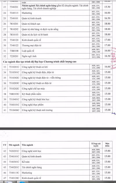 Cụ thể, tại cơ sở chính TPHCM điểm sàn thấp nhất là 15,5 điểm và cao nhất là 20,5 điểm. Ngành có điểm nhận hồ sơ cao nhất là Luật kinh tế, kế đến là Công nghệ kỹ thuật ô tô với 20 điểm.